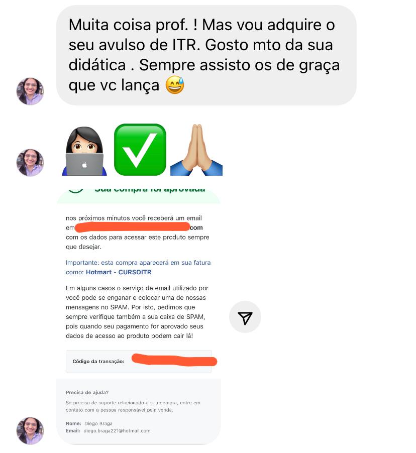 É isso mesmo: eu assumo o seu risco. Optando por entrar agora no Curso Prático de ITR e CCIR, após a aprovação do pagamento, você terá até 7 dias corridos para experimentar as aulas e se não gostar, pode solicitar um reembolso que eu devolverei 100% do seu dinheiro. Não é necessária nenhuma justificativa, sua satisfação é garantida: ou com a Formação em ITR e CCIR ou com o seu dinheiro de volta.